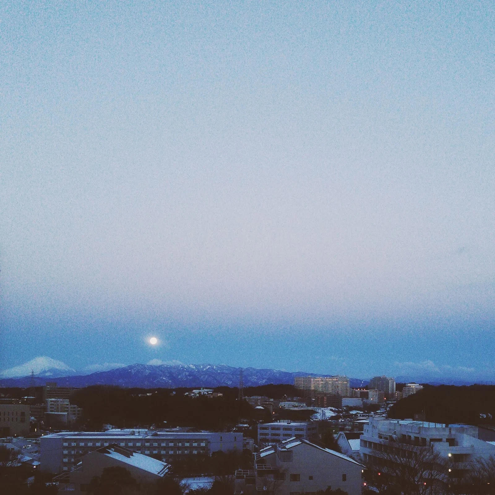 こんな朝早く起きるのも滅多にないし、こんなに雪が積もったままの、満月。